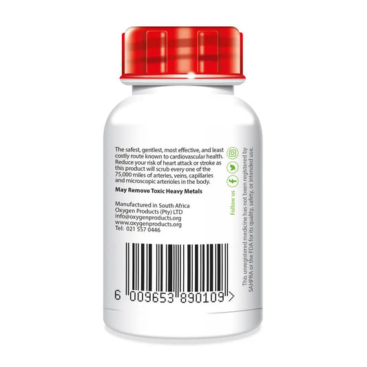 Ingredients: Magnesium Peroxide, Vitamin C, Hypoxis (African potato), Sutherlandia (cancer bush) and Selenium.