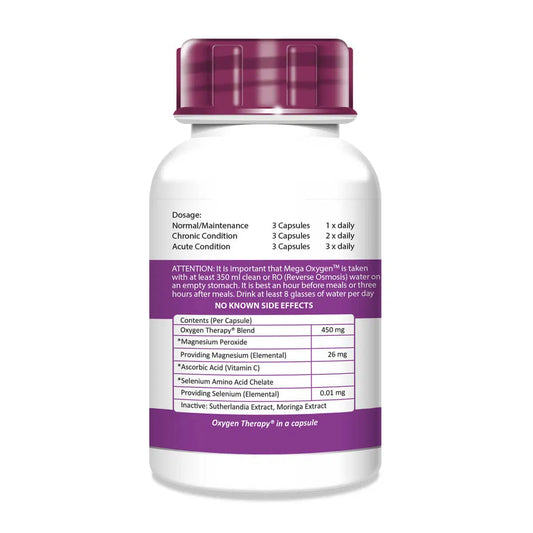 Mega Oxygen™ is a natural blood oxygenator that increases oxygen supply to your body’s cells, aiding in detoxification and immune system support, crucial for combating various diseases.