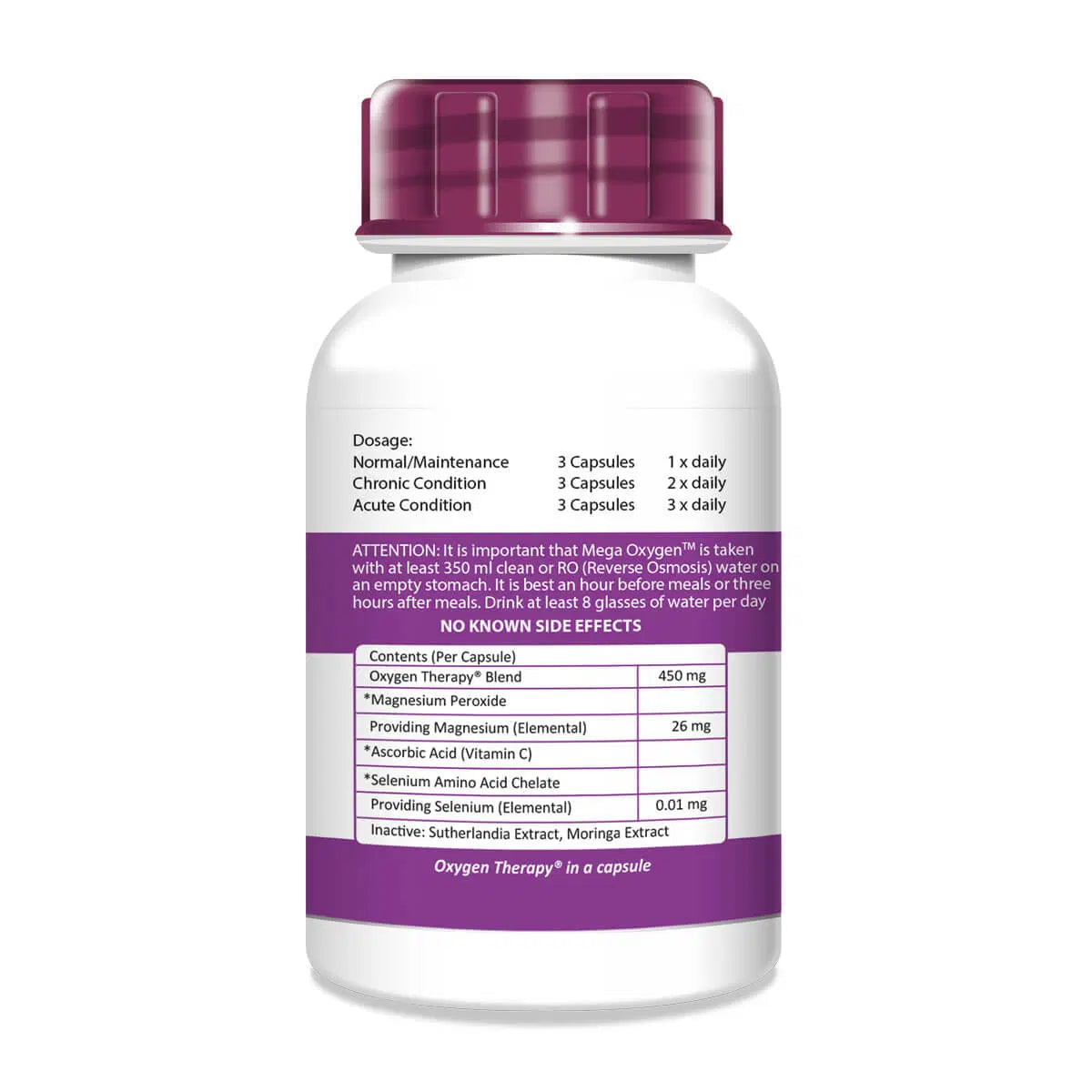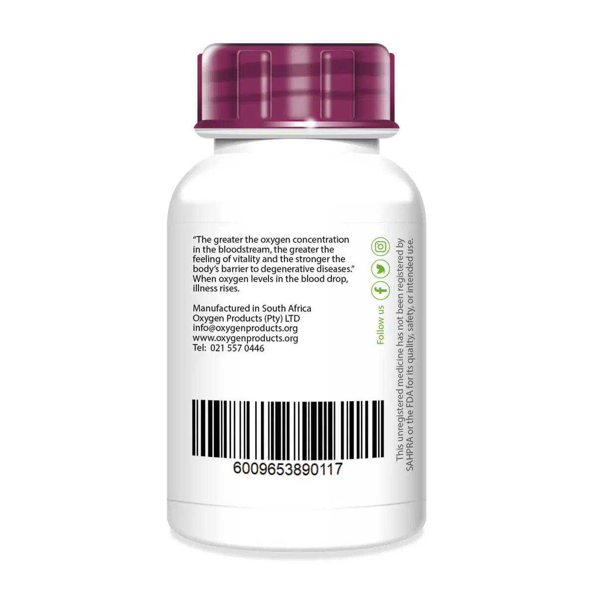 Ingredients: Magnesium Peroxide, Vitamin C, Hypoxis (African potato), Sutherlandia (cancer bush) and Selenium.